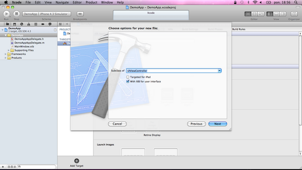 The “IBOutlet” reference in front of the instance variable indicates that you are going to use the Interface Builder to lay out the interface for MainController’s view. When we created MainController, an XIB (XML Interface Builder) file of the same name was created and added to the project. Open MainController.xib now.