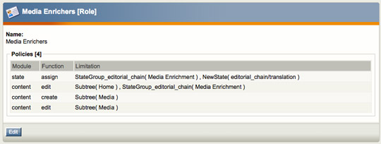 This role is assigned to the «Spell Checkers» group, and allows Stefan, once he finished reviewing a piece of news, to push it one step ahead to the Media Enrichers (Mélanie).
