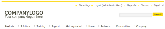 After changing the default size of the logo, our top menu needs to be moved down slightly. This is accomplished by editing one of the CSS files from the skin site package in /var/storage/packages/local/empower_enterprise/files/default/file.