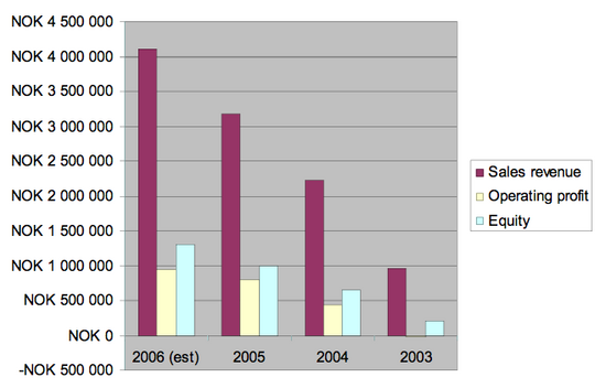 | Sales revenue | 4 100 000 NOK | 3 178 666 NOK | 2 221 303 NOK | 951 462 NOK |